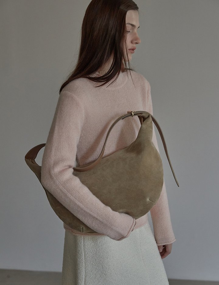 [비뮤즈맨션] 리얼 스웨이드 호보백 샌드베이지