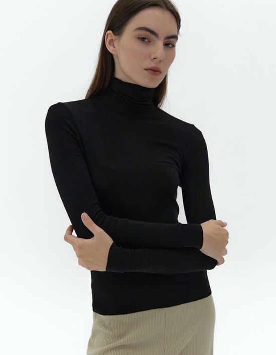 [38컴온커먼] 21AU 소프트 슬림 터틀넥 티셔츠 (블랙)