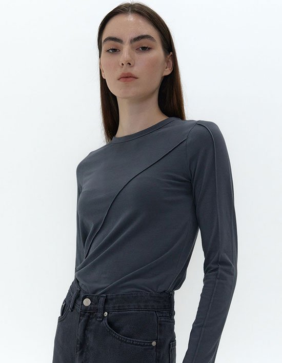 [38컴온커먼] 롱 슬리브 라인 티셔츠 (스모크 네이비)