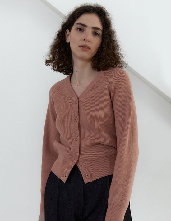 [38컴온커먼] 21S 브이넥 라인 립 가디건 (플라밍고)
