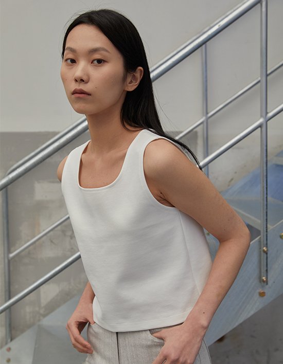 [38컴온커먼] 플랫 스퀘어 슬리브리스 (화이트)
