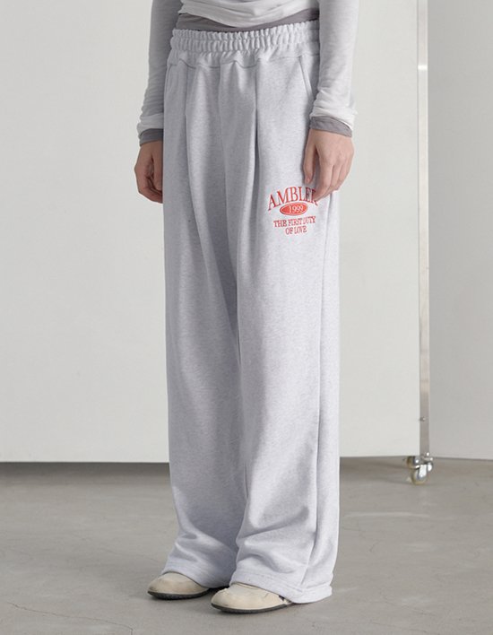 [엠블러] Duty of Love 자수 핀턱 와이드 스웨트 팬츠 AP806 백멜란지(택1)