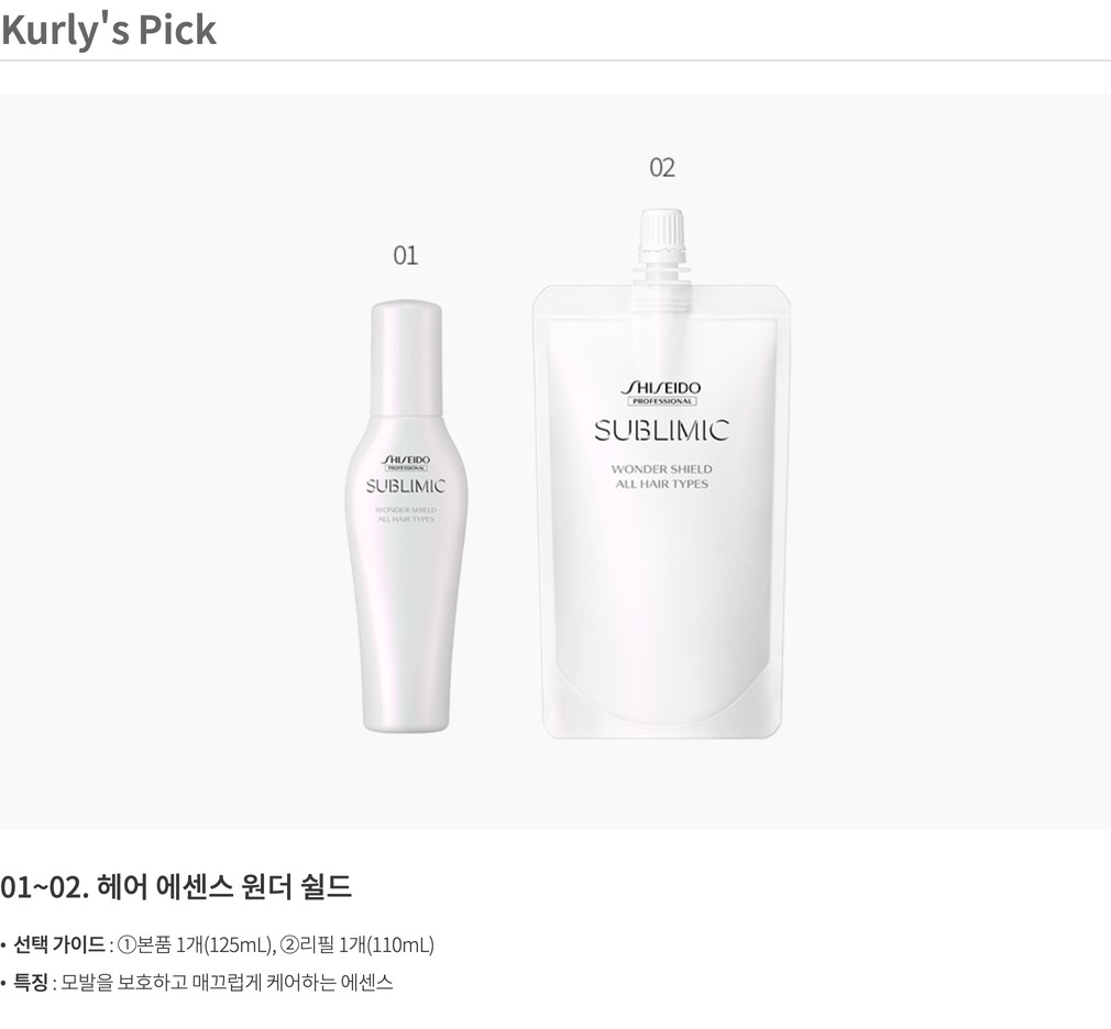 [시세이도 프로페셔널] 헤어에센스 원더쉴드 110/125ml 2종(택1)
