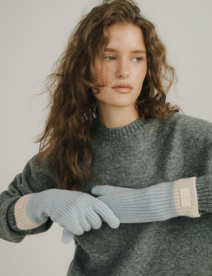 [아비나펠르] 캐시미어 블랜드 리브드 니트 글로브 - 베이비 블루/아이보리