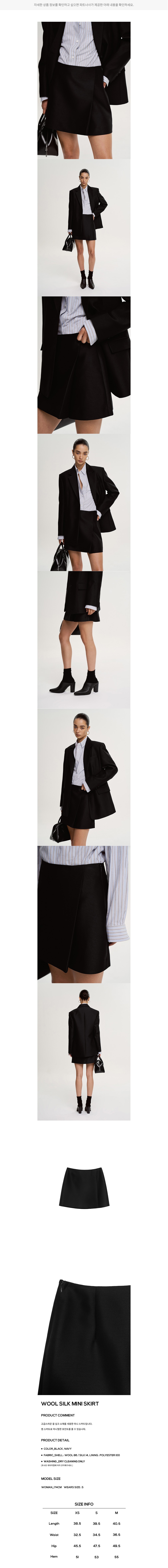 고급스러운 울 실크 소재를 사용한 미니 스커트