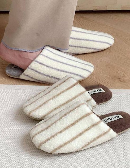 [홈모먼트] 1+1 포근한 스트라이프 커플 실내화 4종 (택1)