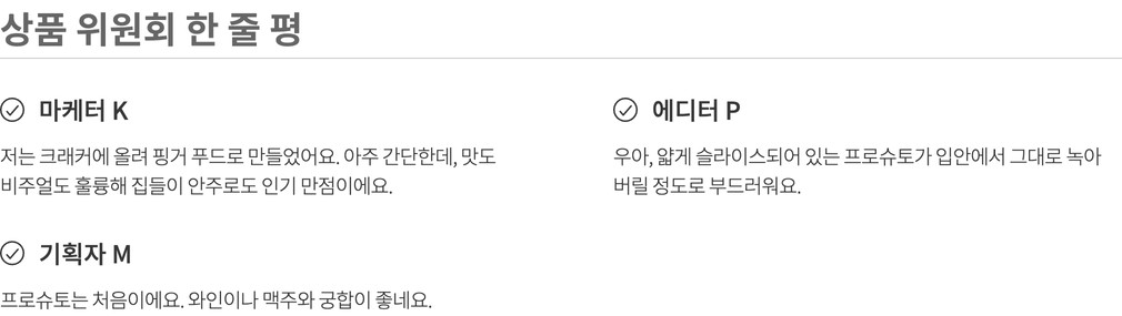 나와 내 가족이 먹고 쓸 상품을 고르는 마음으로 매주 상품을 직접 먹어보고, 경험해보고 성분, 맛, 안정성 등 다각도의 기준을 통과한 상품만을 판매합니다.(온라인 기준 / 자사몰, 직구 제외)