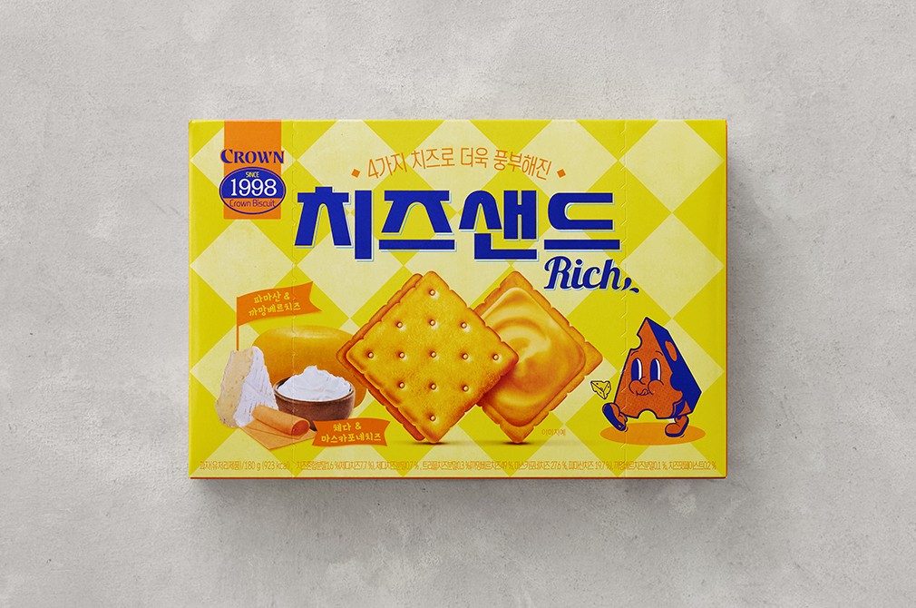 체다, 까망베르 등 다양한 종류의 치즈를 넣어 만든 크라운 치즈샌드 Rich를 만나 보세요. 치즈 본연의 고소하고 부드러운 풍미를 진하게 담아냈답니다. 마트나 편의점에 일부러 나가지 않아도 집에서 편하게 즐길 수 있도록 준비했으니, 장바구니에 쏙 담아보세요.