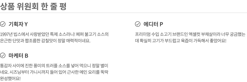 나와 내 가족이 먹고 쓸 상품을 고르는 마음으로 매주 상품을 직접 먹어보고, 경험해보고 성분, 맛, 안정성 등 다각도의 기준을 통과한 상품만을 판매합니다.(온라인 기준 / 자사몰, 직구 제외)
