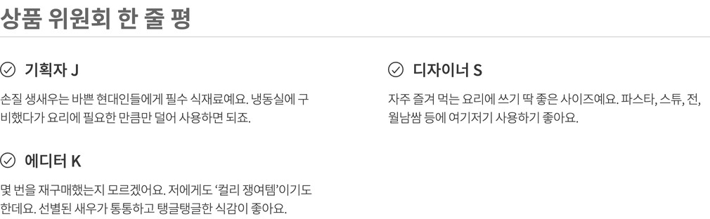 나와 내 가족이 먹고 쓸 상품을 고르는 마음으로 매주 상품을 직접 먹어보고, 경험해보고 성분, 맛, 안정성 등 다각도의 기준을 통과한 상품만을 판매합니다.(온라인 기준 / 자사몰, 직구 제외)