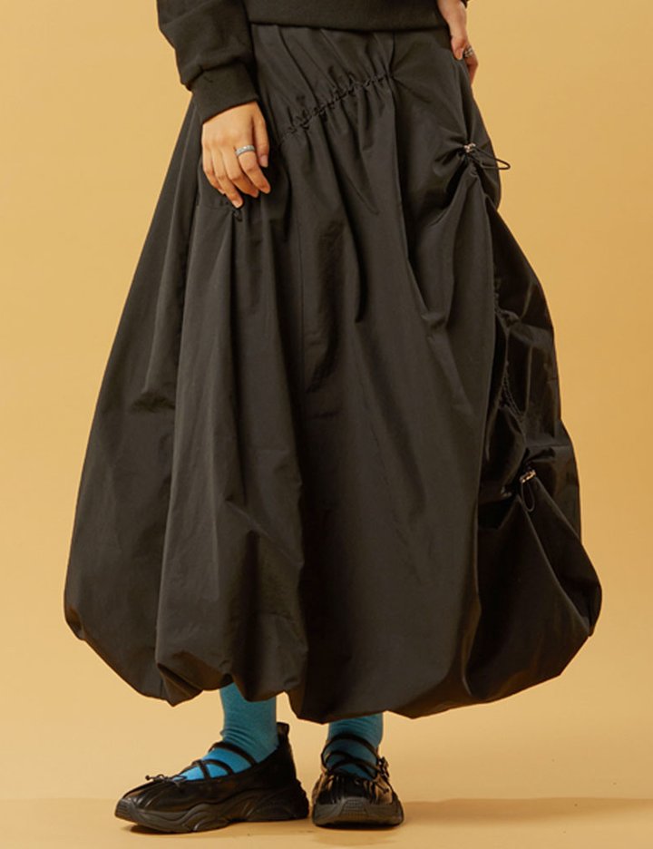 [콜릿] 벌룬 셔링 스트랩 롱스커트_BLACK