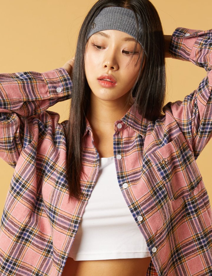 [콜릿] 오버핏 안나 가을 겨울 체크 셔츠_PINK KCL.(기모)