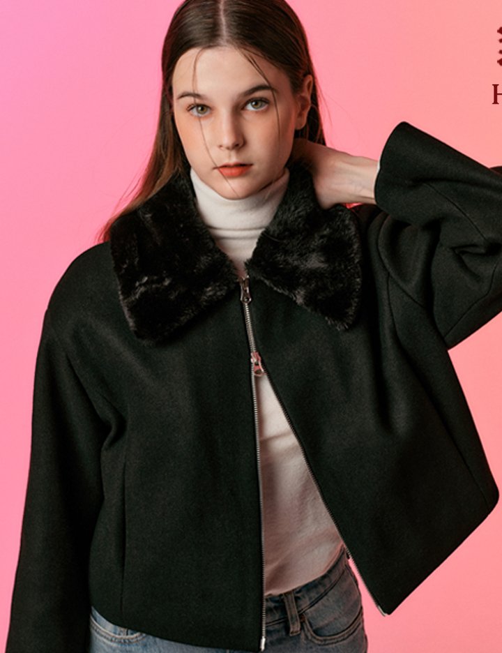 [콜릿] 밍크 카라 크롭 투웨이 집업 무스탕 자켓_블랙(울 ver.)