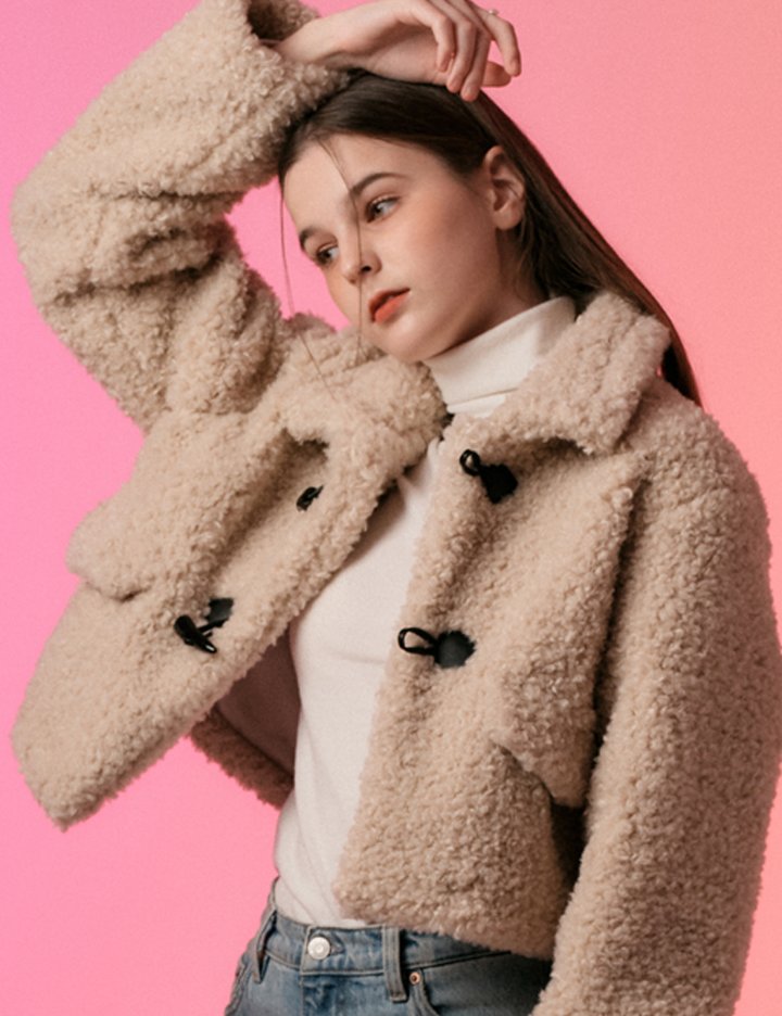 [콜릿] 크롭 떡볶이 퍼 무스탕 플리스 자켓_Beige (더플 양털 ver.)