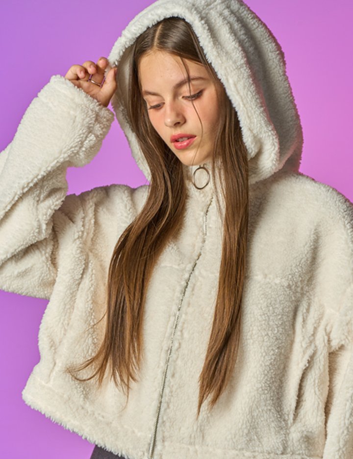 [콜릿] 겨울 후드 무스탕 집업 자켓_IVORY(양털 ver.)