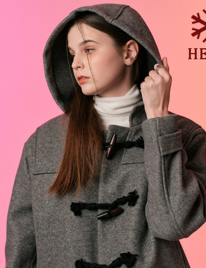 [콜릿] 누빔 크롭 떡볶이 후드 더플 코트 자켓_그레이(울ver.)