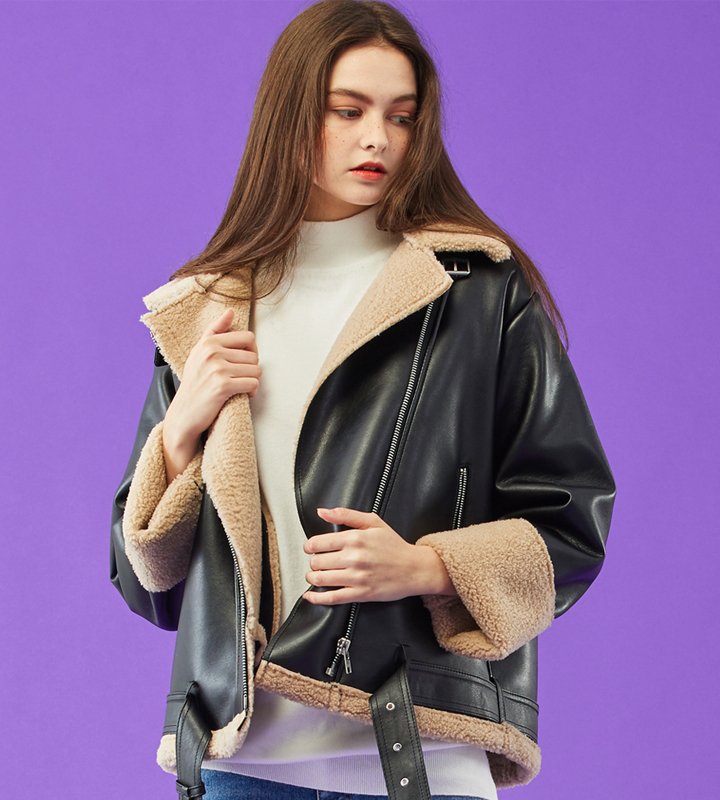 [콜릿] WOMEN 오버핏 무스탕 플리스 자켓_Black Beige
