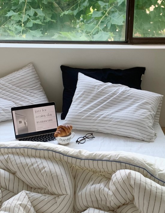 잔잔한 스트라이프와 바스락 거림 없이 소음 없는 차렵이불