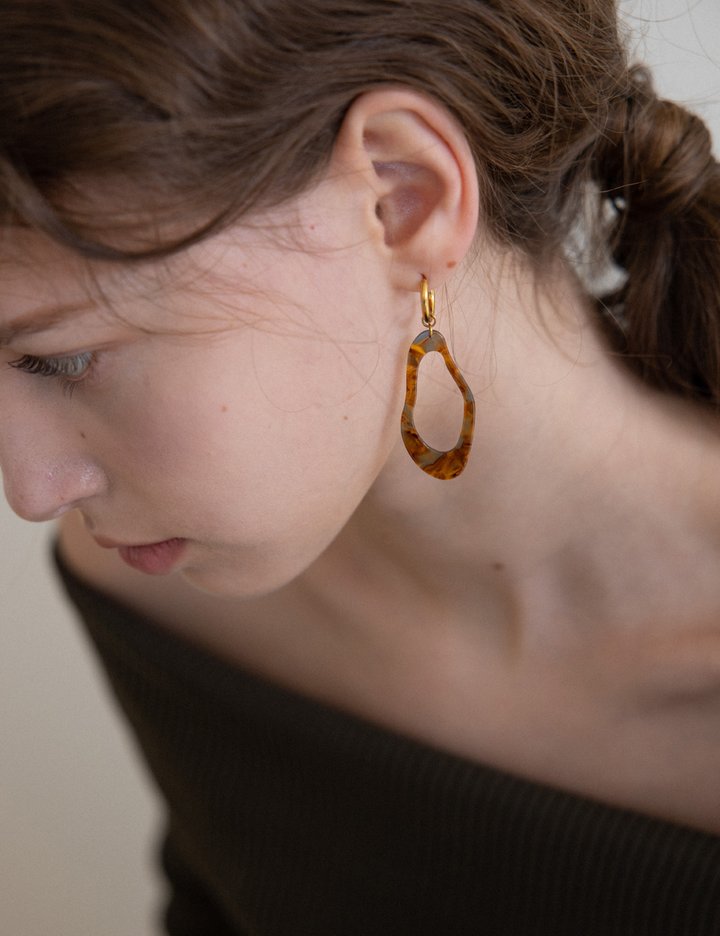 [메리모티브] 브라운 유니크 쉐잎 골드 드롭 귀걸이 (Free)