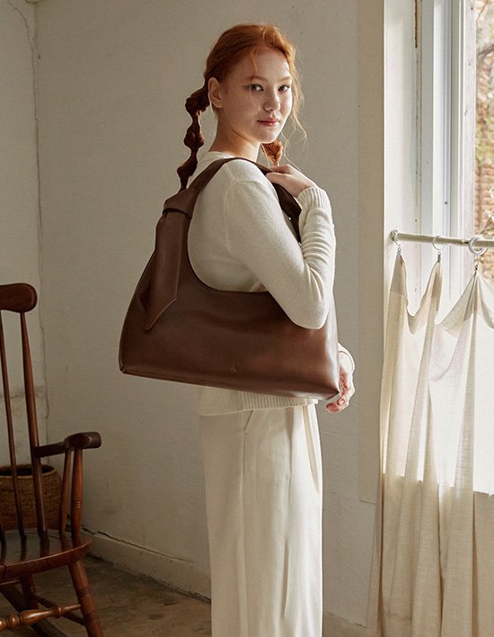유니크한 언밸런스 매듭 포인트가 돋보이는 숄더백