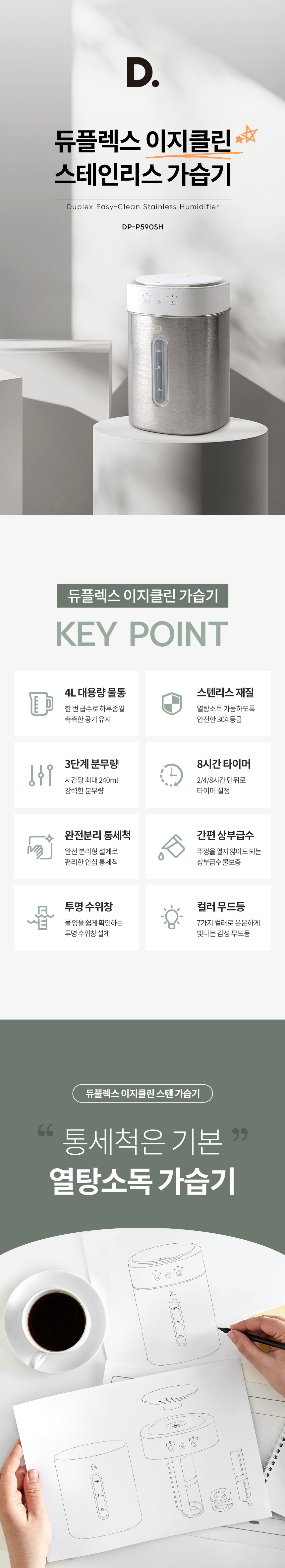 [듀플렉스] 이지클린 스테인리스 초음파 가습기 4L