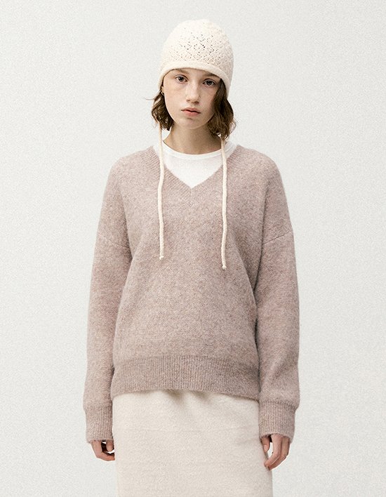 [로에일]코지 브이넥 니트 - 라이트 브라운