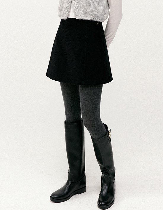 [로에일] 투 버튼 코듀로이 미니 스커트 - 블랙