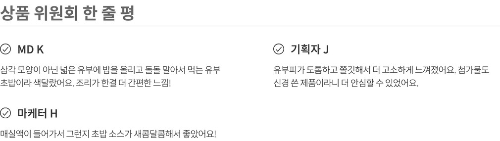 나와 내 가족이 먹고 쓸 상품을 고르는 마음으로 매주 상품을 직접 먹어보고, 경험해보고 성분, 맛, 안정성 등 다각도의 기준을 통과한 상품만을 판매합니다.(온라인 기준 / 자사몰, 직구 제외)