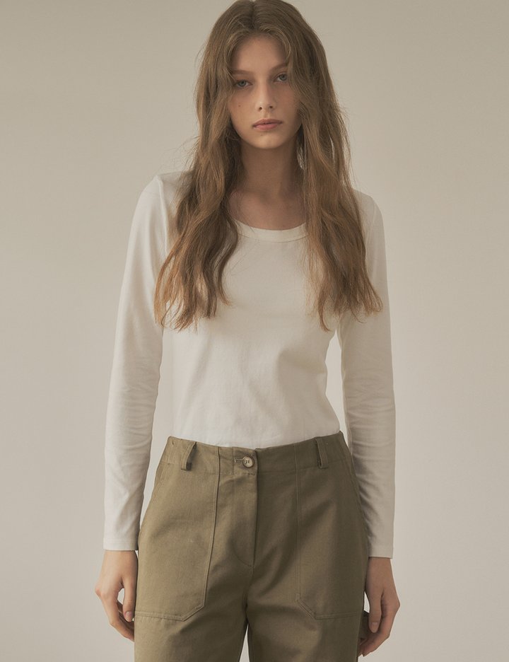 [시야쥬] 스쿱넥 코튼 텐션 티셔츠_아이보리(SITP5119)