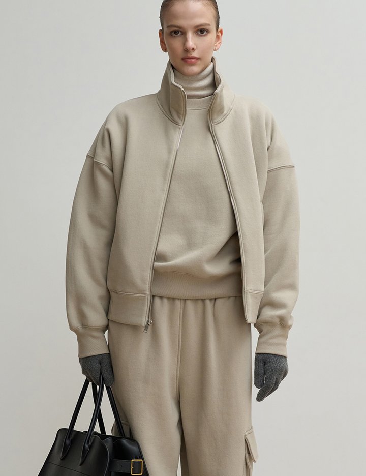 코튼과 폴리에스터 혼방 소재의 스웨트 집업.