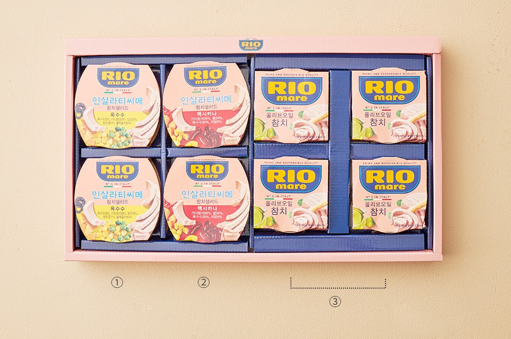 부담 없이 건넬 수 있는 선물로 참치 세트를 빼놓을 수 없는데요. 보다 특별하게 준비할 수 있도록, 전통 있는 이탈리아 참치 브랜드 ‘리오마레’의 혼합 참치 세트를 가져왔어요. 꼼꼼하게 분리한 가다랑어의 살코기 위에 올리브 오일을 넉넉히 끼얹은 올리브 오일 참치는 물론, 옥수수, 당근 등을 섞은 참치 샐러드 2종을 한 박스에 담았어요. 알찬 구성으로 준비했으니, 특별한 날 건네는 선물로 선택해 보세요.