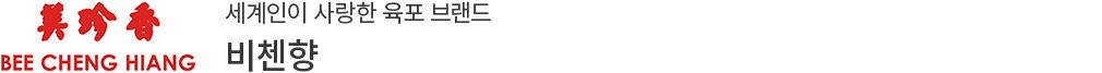 1933년 싱가포르로 이민 간 중국인 Mr. Teo Swee Ee는 싱가포르 차이나타운의 어느 거리에서 육포를 구워 팔았습니다. 독특한 양념과 훈제 방식으로 만든 육포는 많은 이들의 관심을 받았지요. 그는 모양, 맛, 향 세 가지를 충족시키겠다는 의미를 담아 '비첸향'이라는 브랜드를 론칭하기에 이릅니다. 허름한 손수레에서 탄생한 비첸향은 전 세계인이 사랑하는 브랜드로 자리매김했습니다.