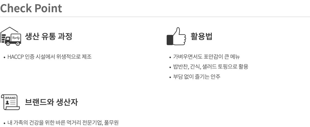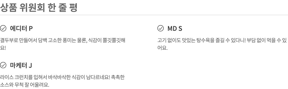 나와 내 가족이 먹고 쓸 상품을 고르는 마음으로 매주 상품을 직접 먹어보고, 경험해보고 성분, 맛, 안정성 등 다각도의 기준을 통과한 상품만을 판매합니다.(온라인 기준 / 자사몰, 직구 제외)