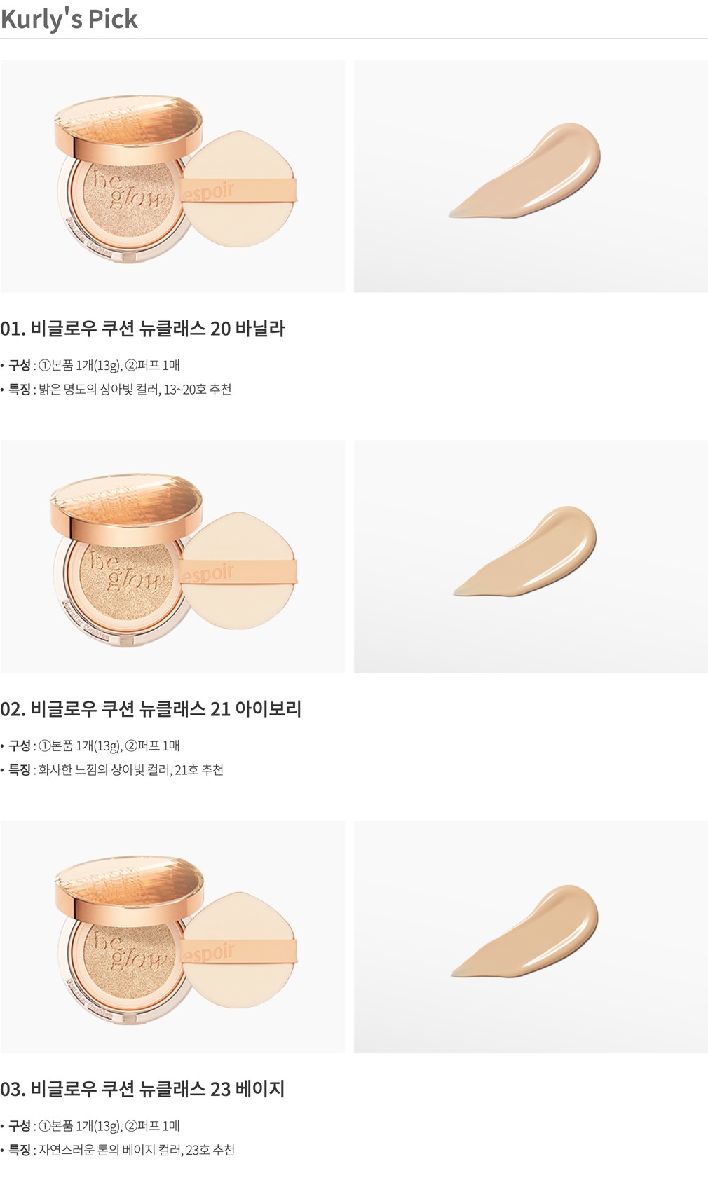[에스쁘아] 비글로우 쿠션 뉴클래스 (본품1+퍼프2) 3종 (택1)