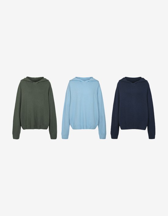 [세컨스킨]3D니트 캐시혼용 롱슬리브 후드 탑 3종 (택1)