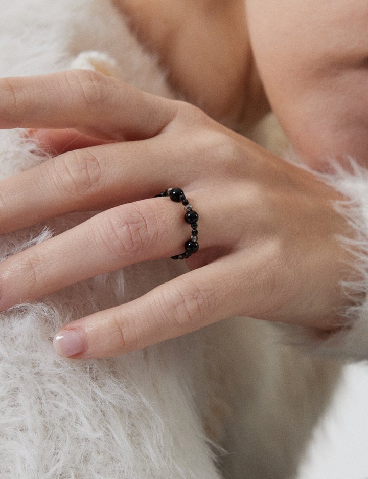 [메리모티브] 블랙 오닉스 크리스탈 비즈 반지 (단품)