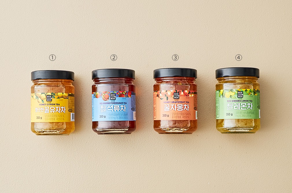 올인원 액상차 ・구성 : ①꿀유자차, ②홍삼담은 석류차, ③꿀자몽차, ④홍삼담은 레몬차