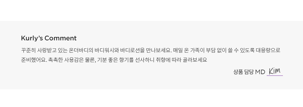・ 특징 : 로즈마리에 라벤더 향을 더해 편안하고 은은한 매력을 담은 바디워시예요.