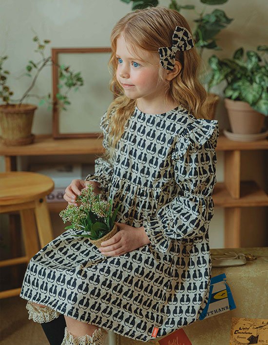 고양이 패턴의 캐주얼한 느낌의 여아 원피스