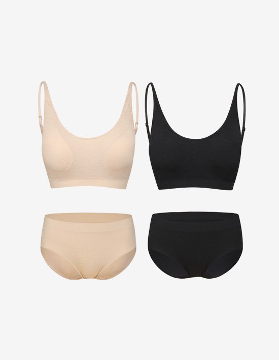 [세컨스킨] 심리스 웨이브 패턴 캐미 브라팬티 세트 2종(택1)