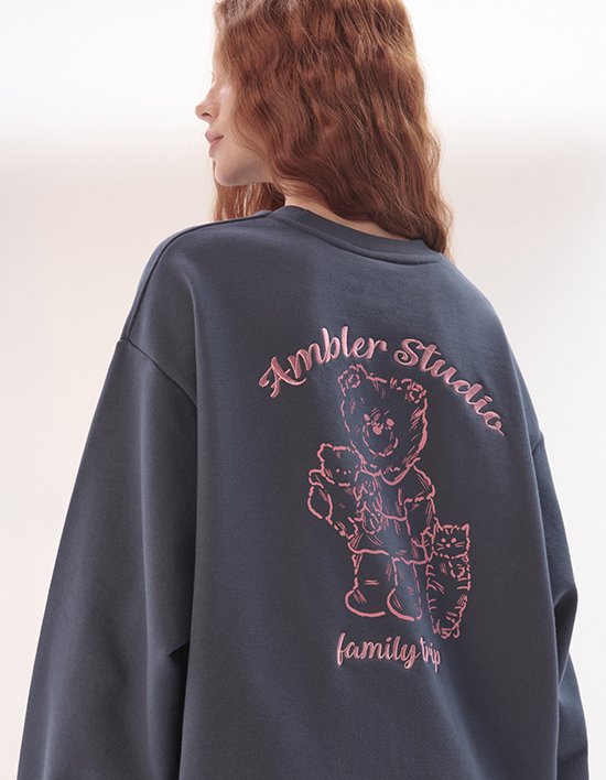 [엠블러] Family Trip 자수 맨투맨 티셔츠 AMM1301 네이비 (택1)