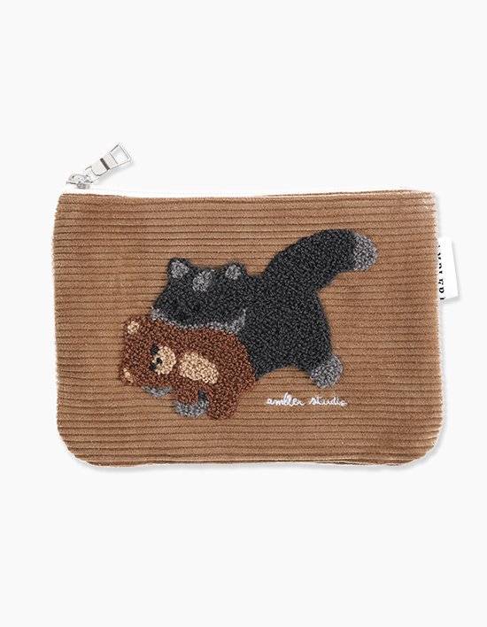 [엠블러]Cat biting Little bear 자수코듀로이파우치 AC601베이지(택1)