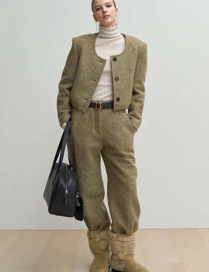 울 혼방 소재로 제작되어 두께감이 도톰하여 FW시즌 착용하기 좋은 팬츠