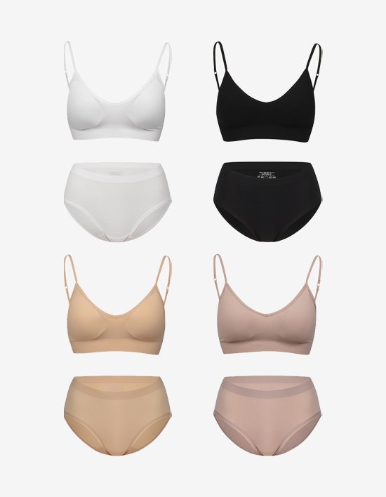 [세컨스킨] 심리스 에어리 후크브라 삼각팬티 세트 4종 (택1)