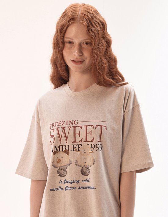 디테일하지만 귀엽게 표현한 아이스크림 눈사람과 빈티지한 텍스트의 배치가 포인트인 그래픽 반팔 티셔츠