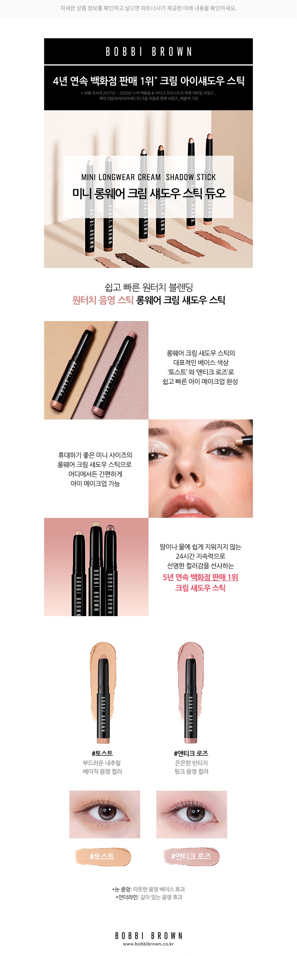미니 롱웨어 크림 섀도우 스틱 듀오 ・ 구성 : ①토스트, ②앤티크 로즈