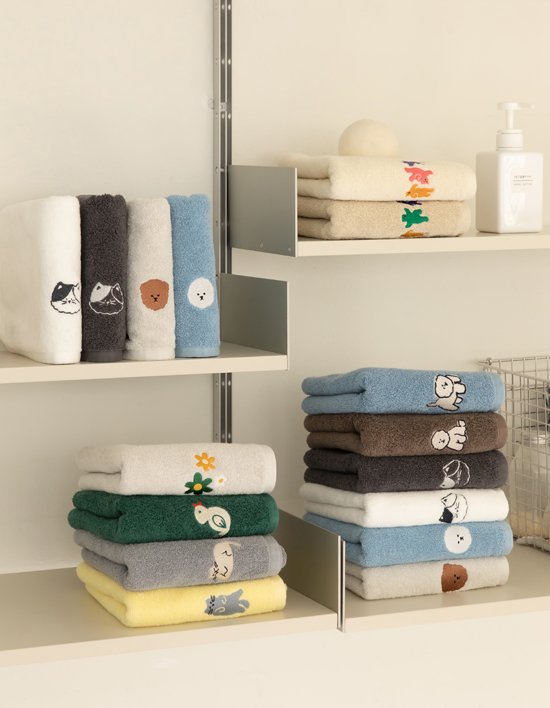 취향따라 고를 수 있는 귀여운 자수 디자인 수건 4p 구성