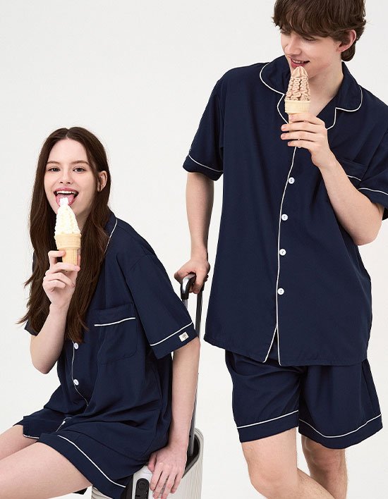 [도씨] 실크핏 에센셜 반팔 커플 잠옷 세트