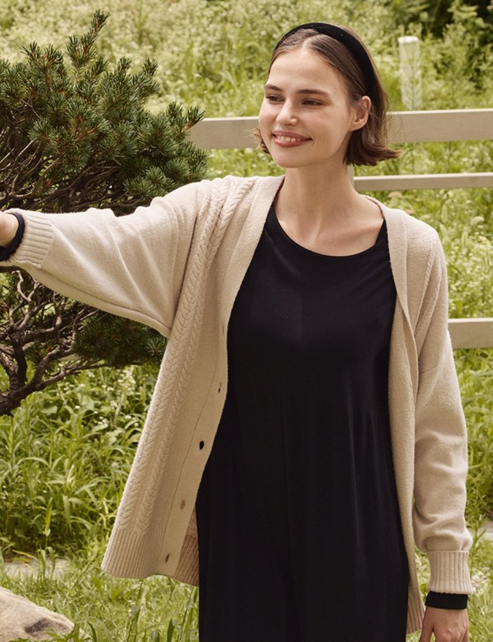 [세컨스킨] 케이블 꼬임 버튼 니트 가디건 1종