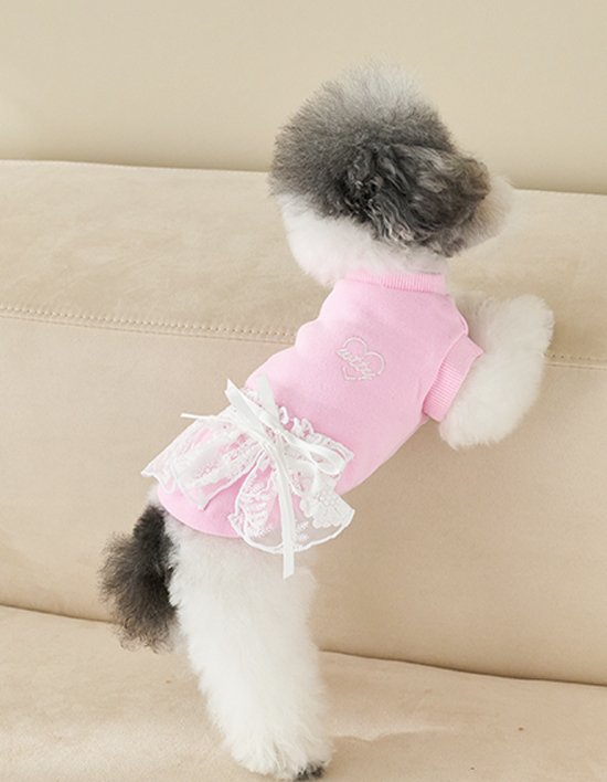 [위드토리] 리본 에이프런 맨투맨 원피스 (핑크)
